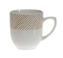 Curate a timeless dining ambiance with Vertex China, RB-17-LSG Cups. These exquisite cups from the Rubicon Collection are designed to elevate your restaurant's aesthetic. With a polished foot and a super white finish, they exude elegance and sophistication. The magnesium reinforced body ensures durability, making them perfect for the demands of a commercial restaurant setting. Each cup has a 9 oz. capacity and comes with a handle for easy gripping. The Linear Sun Gold design adds a touch of luxury, making these cups a standout addition to your tabletop presentation. Whether you're serving hot beverages or showcasing signature cocktails, these cups will impress your guests and enhance their dining experience. Trust Vertex China for premium quality and style that lasts.