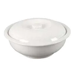 Simplify your tabletop presentation with the Vertex China, RB-S8 Soup Tureen. This elegant and functional tureen is perfect for commercial restaurant use. With a capacity of 35 oz and an 8" diameter, it is ideal for serving soups, casseroles, and other delicious dishes. The round shape and polished foot add a touch of sophistication to any table setting. Made with a magnesium reinforced body, this tureen is durable and long-lasting, ensuring it can withstand the demands of a busy restaurant environment. The lid keeps food warm and prevents spills, while the unhandled design allows for easy serving. The super white color of the tureen adds a clean and modern look to your presentation. Part of the Premium Rubicon Collection, this tureen is a must-have for any restaurant looking to elevate their dining experience.