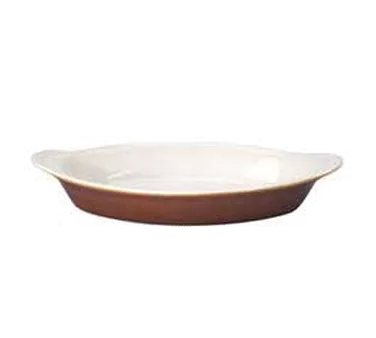 Upgrade your dining space with the Vertex China, WRO-8-C Rarebit. This oval-shaped dish from the Brown Accessories Collection is perfect for serving Welsh Rarebit, caramel, or any other delectable dish in your commercial restaurant. Made of scratch-resistant vitrified china, this 8 oz. dish is built to withstand the rigors of a busy kitchen. Its microwave and dishwasher-safe design ensures easy and convenient use, saving you time and effort. The Vertex China, WRO-8-C Rarebit combines durability, functionality, and style, making it a valuable addition to any commercial restaurant. Elevate your dining experience and impress your customers with this high-quality dish that is designed to meet the demands of a busy restaurant environment.