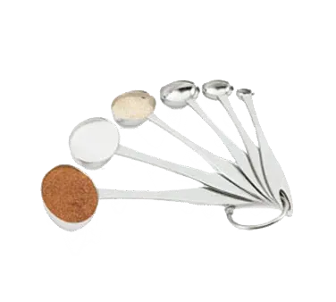 Kitchen innovation at its best, the Vollrath 46588 Measuring Spoons are a must-have tool for any commercial restaurant. Made from high-quality 18/8 stainless steel, these measuring spoons are built to withstand the demands of a busy kitchen. The unique oval bowl design allows for easy pouring and precise measurements, ensuring accurate ingredient quantities every time. Each spoon is stamped with its capacity, making it easy to identify the right size quickly. The set includes six spoons, ranging from 1/8 teaspoon to 1 tablespoon, providing a wide range of measurement options for various recipes. The spoons are securely held together with a stainless steel ring, keeping them organized and easily accessible. Upgrade your culinary precision with the Vollrath 46588 Measuring Spoons.