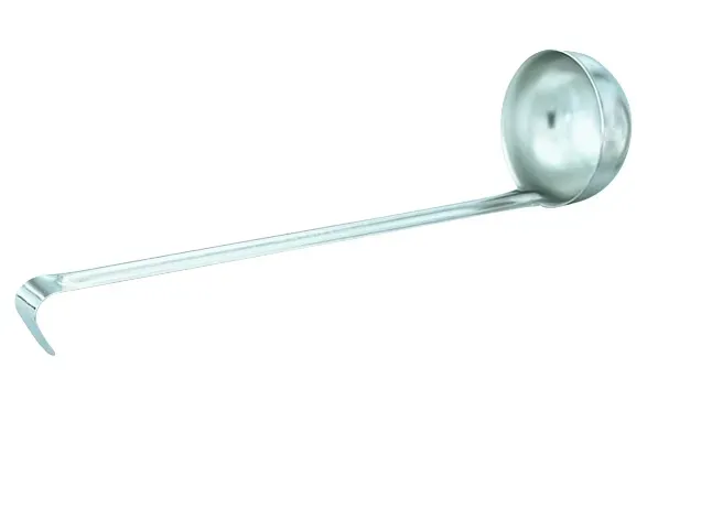 The economy ladle by Vollrath is ideal for any kitchen. The one-piece construction makes this ladle easy to clean, resistant to breakage and more sanitary. Made of durable stainless steel, this ladle features a sleek mirror finish that creates a sophisticated appearance. The hooked handle ensures convenient storage and prevents sliding into pots, while the grooved design adds strength. With the capacity permanently marked on the handle, this ladle makes stirring, measuring, serving and controlling portions impressively easy.