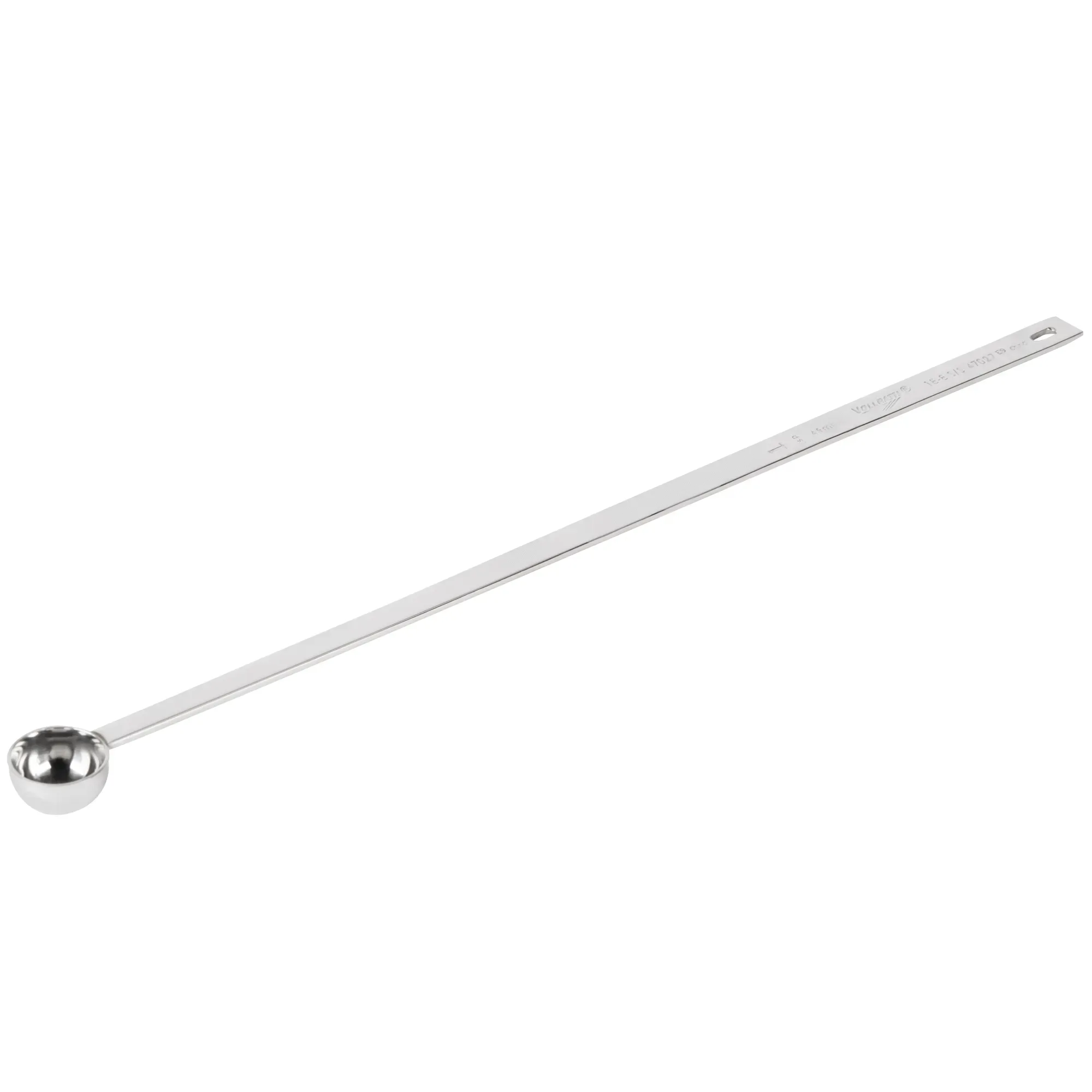 Reach into deep containers with ease, thanks to the long handle on the round measuring spoon by Vollrath. Made of seamless stainless steel, this spoon is durable, long-lasting and easy to clean, and the capacity is stamped clearly for quick identification. The long handle offers excellent reach, leverage and a comfortable grip, while the hang-hole provides a convenient storage solution.