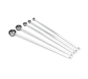Transform your food service with the Vollrath, 47031, Measuring Spoons. These long handle measuring spoons are a must-have tool for any commercial restaurant. Made from durable 18/8 stainless steel, these spoons are built to withstand the demands of a busy kitchen. The 14" long handle ensures easy and accurate measuring, even in deep containers. The one-piece construction and stamped capacities provide durability and clarity, making it easy to identify the right measurement. The set includes 3mm stainless rings that hold each spoon securely, preventing them from getting lost or misplaced. With capacities ranging from 1/4 tsp (1.25ml) to 2-tbsp (30ml), these spoons cover all your measuring needs. Upgrade your kitchen with the Vollrath, 47031, Measuring Spoons and experience the convenience and accuracy they bring to your food service operation.