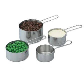 Master the art of flavor with Vollrath, 47119, Measuring Cups. This four-piece set is a must-have for any commercial restaurant kitchen. Made from durable 300 series stainless steel, these measuring cups are built to withstand the demands of a busy kitchen. The measurements are conveniently stamped into the side of each cup, ensuring accuracy and ease of use. The integral spout allows for precise pouring, minimizing spills and waste. With a set that contains 1-cup, 1/2-cup, 1/3-cup, and 1/4-cup measurements, you'll have all the sizes you need for any recipe. These measuring cups are dishwasher safe, making cleanup a breeze. Upgrade your kitchen with Vollrath, 47119, Measuring Cups and elevate your culinary creations to new heights.
