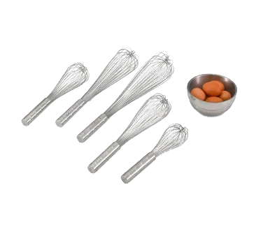 Unleash your kitchen's potential with the Vollrath 47257 Piano Whip / Whisk. This essential tool is designed to meet the demands of a busy commercial restaurant kitchen. With its all stainless steel construction, this whisk is built to last and withstand the rigors of daily use. The patented handle offers textured "comfort nubs" for a secure grip, ensuring comfort and control during use. The 14" long whisk features welded wires with a reinforced center wire, providing durability and strength for efficient mixing and blending. Whether you're whipping up fluffy meringues or creating silky sauces, this Vollrath Piano Whip is the perfect tool for achieving the desired consistency and texture. NSF certified and imported, this whisk is a reliable and trusted choice for professional chefs. Elevate your culinary creations with the Vollrath 47257 Piano Whip / Whisk.