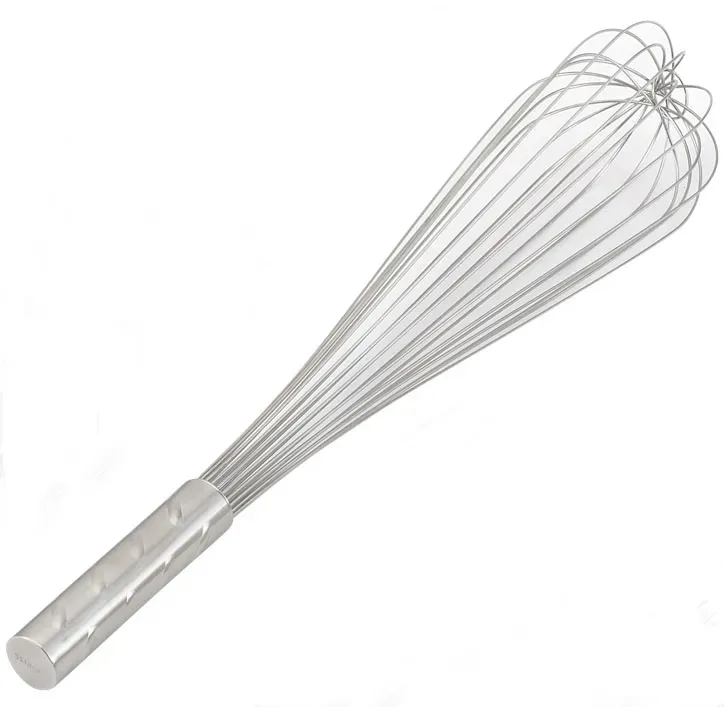 Designed for comfort, durability and longevity, the piano whip by Vollrath is a versatile tool. The fine wires, which are ideal for mixing or aerating thinner food products, are reinforced by a center wire, so they won't bend, twist or deform no matter how vigorously you whip. The round shape provides good coverage in round bowls, and integral nubs on the one-piece handle ensure a safe, comfortable grip and excellent control.