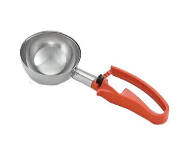 Introducing the Vollrath 47388 Disher, Standard Round Bowl - the perfect tool to craft culinary wonders in your commercial restaurant. This stainless steel scoop and shaft disher is designed for left or right-handed users, ensuring ease of use for all your kitchen staff. The one-piece orange color-coded handle is not only ergonomic but also adds a pop of color to your kitchen. With a generous 8 oz. capacity and a size of 4.3-5/8" diameter, this disher is ideal for portioning out consistent servings of mashed potatoes, rice, or other side dishes. Its durable construction and NSF certification guarantee its suitability for commercial use. Please note that this disher is not recommended for use with ice cream or hard products. Elevate your culinary creations with the Vollrath 47388 Disher, Standard Round Bowl.