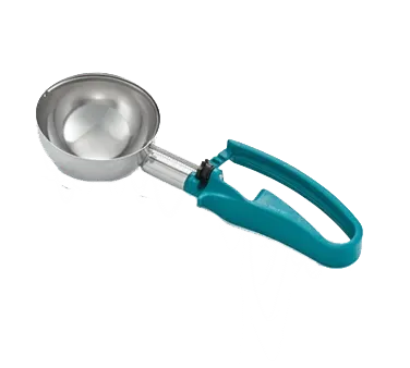 Elevate your dining experience with the Vollrath 47389 Disher, Standard Round Bowl. This high-quality disher is designed to enhance efficiency and precision in a commercial restaurant setting. With its one-piece teal color-coded handle, this disher is not only visually appealing but also ergonomically designed for both left and right-handed users. The stainless steel scoop and shaft ensure durability and longevity, making it a reliable tool for your kitchen. The 6 oz. size and 5.3-3/8" diameter of the scoop make it perfect for portioning out consistent servings of various foods. Whether you're serving mashed potatoes, rice, or even cookie dough, this disher will help you maintain portion control and presentation. Please note that it is not recommended for use with ice cream or hard products. Trust Vollrath, a reputable vendor in the industry, and invest in this Vollrath 47389 Disher to streamline your restaurant operations.