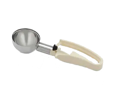 Transform your food service with the Vollrath 47392 Disher, Standard Round Bowl. This high-quality stainless steel scoop and shaft are designed to meet the demands of a busy commercial restaurant. The one-piece ivory color-coded handle is not only ergonomic but also designed for both left and right-handed users, ensuring comfort and ease of use for all staff members. With a size of 10.2-3/4" diameter and a capacity of 3.2 oz., this disher is perfect for portioning out consistent servings of soups, stews, and other dishes. The NSF certification guarantees that this disher meets the highest standards of safety and sanitation. Please note that this disher is not recommended for use with ice cream or hard products. Upgrade your food service operation with the Vollrath 47392 Disher, Standard Round Bowl.