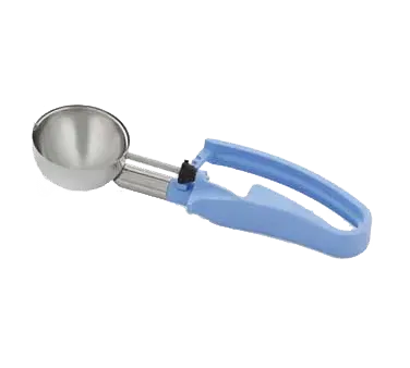 Cook with confidence and flair using the Vollrath 47394 Disher. This standard round bowl disher is designed to make your food preparation process efficient and precise. With a size of 14.2-3/8" diameter, this stainless steel scoop and shaft ensure durability and longevity, making it perfect for commercial restaurant use. The one-piece sky blue color-coded handle is not only ergonomic but also designed for both left and right-handed users, providing comfort and ease of use. Whether you're scooping mashed potatoes, portioning cookie dough, or serving side dishes, this NSF-approved disher is a reliable tool that will enhance your kitchen operations. Please note that it is not recommended for use with ice cream or hard products. Trust Vollrath for quality and efficiency in your restaurant kitchen.