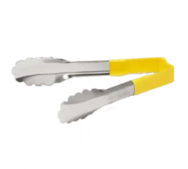 Equip your commercial kitchen with the Vollrath 4780650 Utility Tongs. These one-piece tongs are a must-have tool for any professional chef or restaurant owner. Made from high-quality stainless steel, these tongs are built to withstand the demands of a busy kitchen. The yellow kool-Touch handle ensures a comfortable grip and protects against heat, making it safe to handle hot foods. The springless design and ergonomic handle provide ease of use and precision control. These tongs are also equipped with all-natural antimicrobial properties, ensuring food safety and preventing cross-contamination. With a heat resistance of up to 180°F (82.1°C), these tongs can handle the hottest dishes without warping or melting. They are dishwasher safe for easy cleaning and NSF certified for peace of mind. Add these Vollrath Utility Tongs to your kitchen arsenal and experience the durability and functionality that Vollrath is known for.