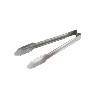 Introducing the Vollrath 4780910 Utility Tongs, the perfect tool to simplify restaurant operations. Made in the USA by Vollrath, a trusted name in the industry, these utility tongs are designed to enhance efficiency and durability in a commercial restaurant setting. With a one-piece construction and plain stainless steel material, these tongs are built to withstand the demands of a busy kitchen. The 9-1/2" length and ergonomic handle provide a comfortable grip, allowing for precise control when handling food. The springless design ensures easy operation and maintenance. These utility tongs are NSF certified, guaranteeing their safety and hygiene standards. Whether you're flipping burgers on the grill or plating delicate pastries, the Vollrath 4780910 Utility Tongs are a must-have tool for any commercial kitchen.
