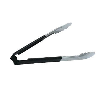 Enhance the heart of your restaurant with the Vollrath, 4780920, Utility Tongs. These one-piece tongs are a must-have tool for any commercial kitchen. Made with all-natural antimicrobial materials, they ensure food safety and prevent cross-contamination. The 9-1/2" (24.1 cm) length provides the perfect balance between control and reach, making it easy to handle a variety of food items. The black kool-Touch handle stays cool to the touch, even when used in high-temperature environments, protecting your staff from burns. Crafted from durable stainless steel, these tongs are built to withstand the demands of a busy restaurant kitchen. The springless design and ergonomic handle offer comfortable and precise handling, reducing fatigue during long shifts. With a heat resistance of up to 180°F (82.1°C), these tongs can handle hot foods without warping or melting. They are also dishwasher safe, ensuring easy and efficient cleaning. NSF certified and proudly made in the USA, the Vollrath Utility Tongs are backed by a Limited Lifetime Warranty, guaranteeing their quality and durability. Elevate your restaurant's efficiency and food handling with these reliable and versatile tongs.