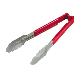 Unleash gastronomic brilliance with the Vollrath, 4780940, Utility Tongs. These one-piece tongs are a must-have for any commercial restaurant. Equipped with all-natural antimicrobial properties, they ensure a hygienic food handling experience. The 9-1/2" (24.1 cm) length and ergonomic handle provide a comfortable grip, allowing chefs to effortlessly maneuver and serve dishes. Made from durable stainless steel, these tongs are built to withstand the demands of a busy kitchen. The springless design eliminates the risk of breakage, ensuring long-lasting performance. With a heat resistance of up to 180°F (82.1°C), these tongs can handle hot foods without warping or melting. Cleaning is a breeze as they are dishwasher safe. Ideal for HACCP programs, these tongs meet the highest food safety standards. Proudly made in the USA and backed by a Limited Lifetime Warranty, the Vollrath Utility Tongs are a reliable and essential tool for any professional chef.