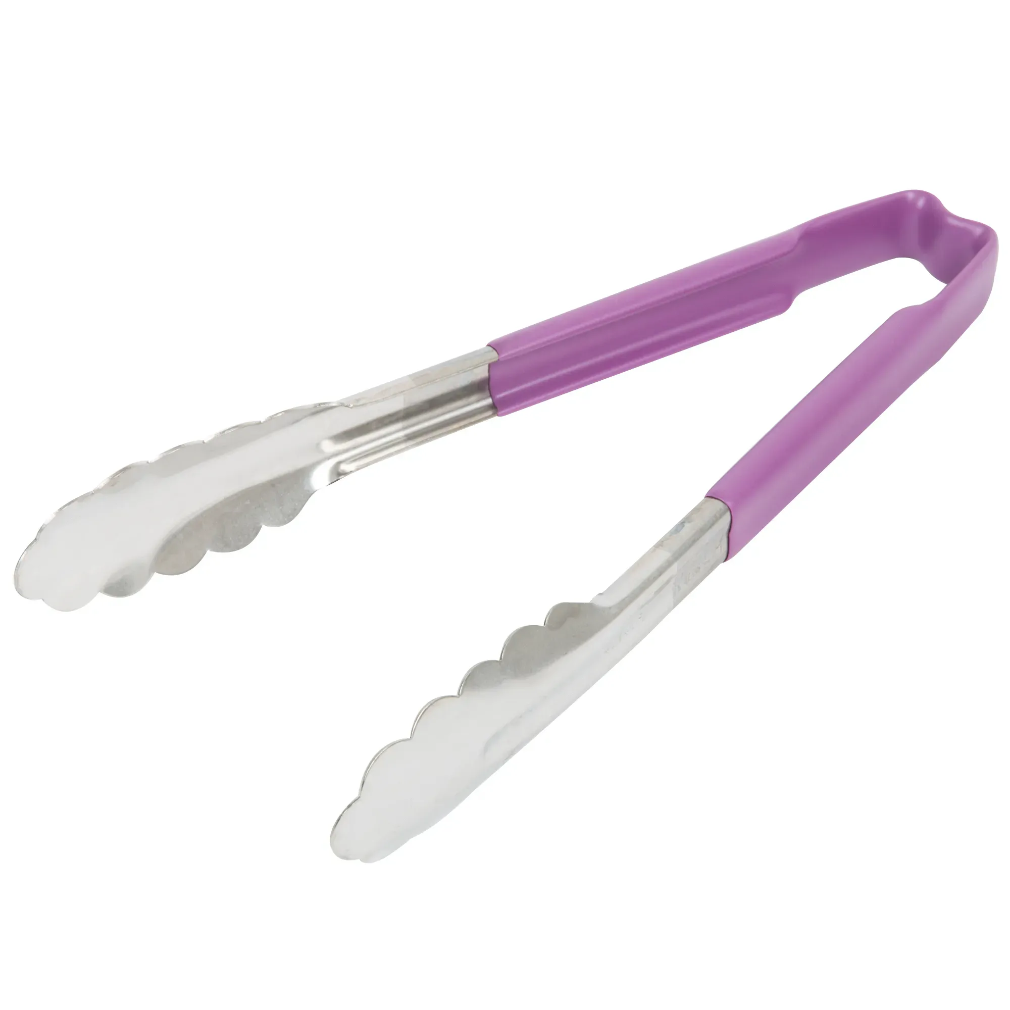 Offering outstanding durability, efficiency and versatility, the one-piece scalloped tongs by Vollrath are perfect for cooking and serving. Made of strong stainless steel, these tongs are fully functional up to 350°F and are sure to provide years of superior service. The springless design eliminates food traps and ensures easy cleaning, while the scalloped ends allow for a gentle, yet firm, grip on a wide range of food items. The insulated Kool-Touch handle is heat-resistant up to 180°F and color-safe up to 225°F. It creates a comfortable, cool grip and features all-natural antimicrobial properties that guard against harmful bacteria. And the purple color allows for quick identification and helps you maximize your kitchen’s HACCP program.