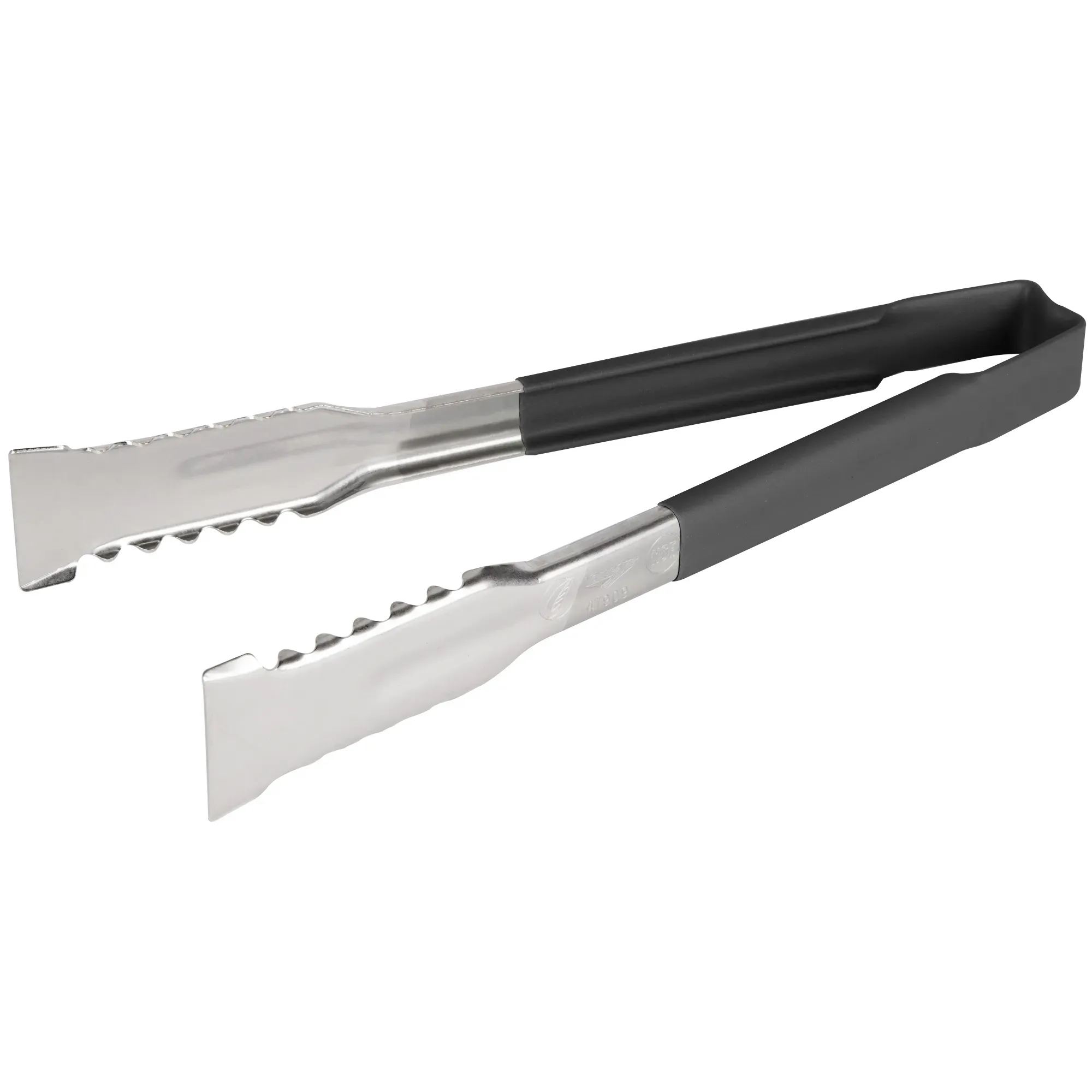 Offering outstanding durability, efficiency and versatility, the one-piece scalloped tongs by Vollrath are perfect for cooking and serving. Made of strong stainless steel, these tongs are fully functional up to 350°F and are sure to provide years of superior service. The springless design eliminates food traps and ensures easy cleaning, while the Versagrip design features flat, elongated ends with gripper teeth that securely grab meat and other food items. The insulated Kool-Touch handle is heat-resistant up to 180°F and color-safe up to 225°F. It creates a comfortable, cool grip and features all-natural antimicrobial properties that guard against harmful bacteria. And the black color allows for quick identification and helps you maximize your kitchen’s HACCP program.