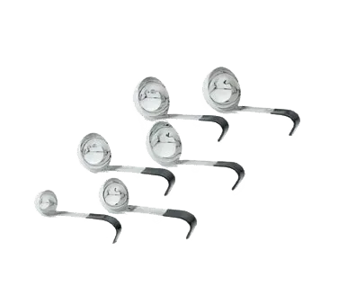 Equip your kitchen for success with the Vollrath 4970520 Ladle. This one-piece ladle is a must-have tool for any commercial restaurant. Made from 18/8 stainless steel, it is durable and built to last. The ladle is equipped with an all-natural antimicrobial, ensuring food safety and preventing the growth of bacteria. With a capacity of 5 oz., it is perfect for serving soups, sauces, and other liquids. The 3-13/32" bowl diameter allows for easy pouring and portion control. The ladle features a 6" black Kool-Touch coated short handle, which is heat resistant up to 180F (82C), ensuring safe and comfortable handling. The capacity is stamped on the product for easy identification. NSF certified and backed by a Limited Lifetime Warranty, the Vollrath 4970520 Ladle is a reliable and essential tool for any commercial kitchen.