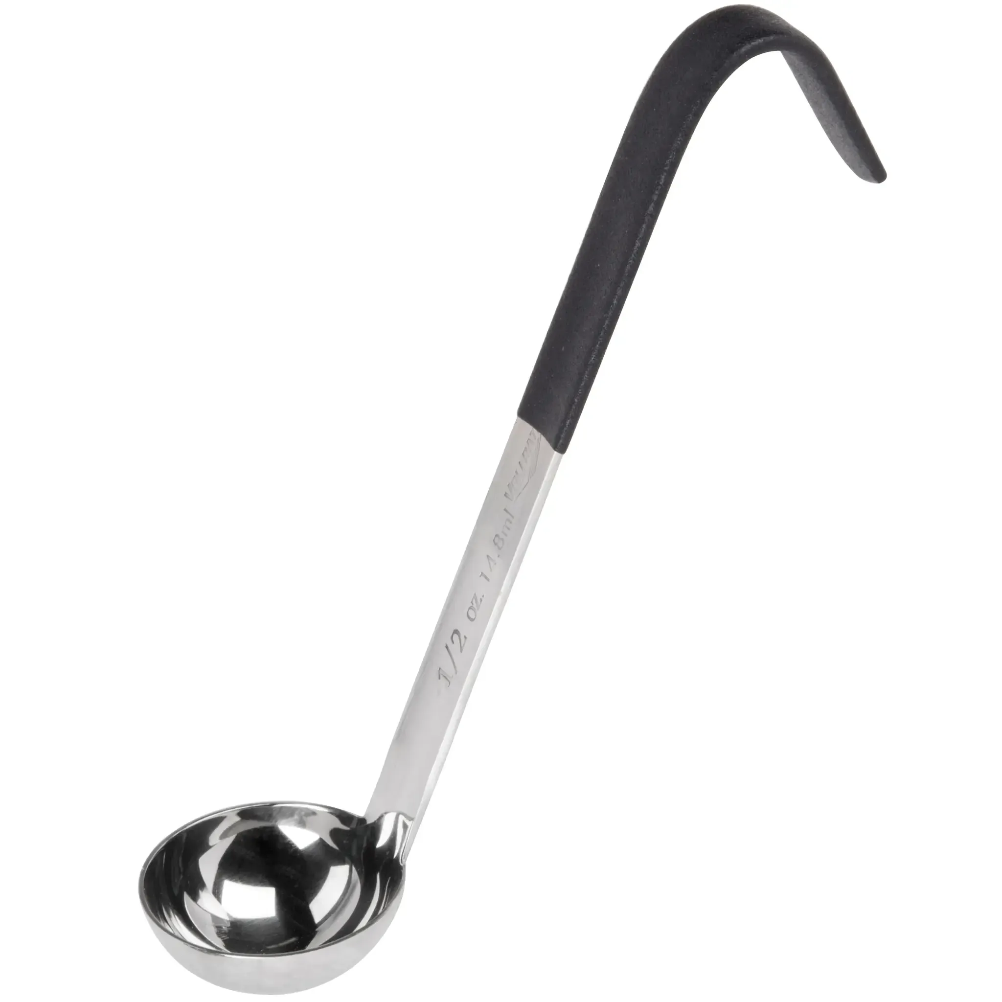 The stainless steel ladle by Vollrath allows you to stir, scoop and serve with efficiency and ease. This versatile ladle is made of heavy-duty stainless steel that is fully functional up to 350°F and features a Kool-Touch handle. This insulated handle is color-safe up to 225°F, offers a comfortable grip and has all-natural antimicrobial properties. The precise bowl dimensions ensure accurate capacity, and the stamp on the handle allows for quick identification. With a hooked handle to prevent sliding into pots and a smooth, one-piece design, this ladle is easy to clean and a valuable addition to any kitchen.