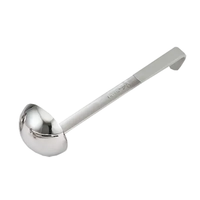Introducing the Vollrath, 4980445, Ladle, Serving - the perfect tool to dominate the culinary world. Crafted by Vollrath, a trusted name in the industry, this ladle is designed to meet the needs of commercial restaurants. Made from heavy-duty 18/8 stainless steel, this ladle is not only durable but also equipped with all-natural antimicrobial properties, ensuring food safety and hygiene. The 4 oz. (118.3 ml) capacity is ideal for serving soups, sauces, and gravies with precision. The grooved hooked gray Kool-Touch handle provides a comfortable grip, even when handling hot liquids, while the satin finish adds a touch of elegance. The mirror-finished bowl is stamped with the capacity in ounces and milliliters for easy measurement. NSF certified and backed by a Limited Lifetime Warranty, this ladle is a reliable and long-lasting addition to any commercial kitchen. Don't settle for anything less than the best - choose the Vollrath, 4980445, Ladle, Serving and elevate your culinary creations.