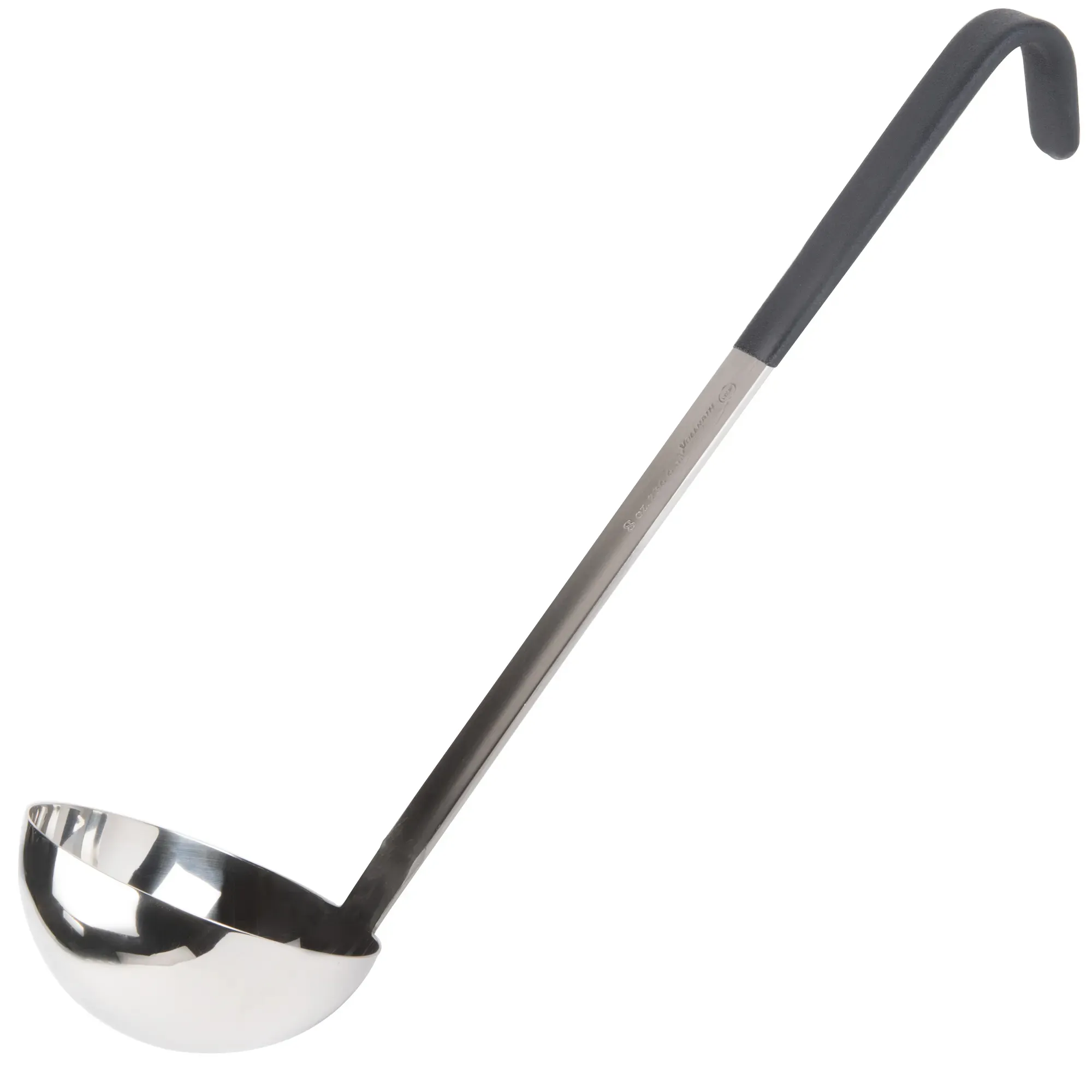 The stainless steel ladle by Vollrath allows you to stir, scoop and serve with efficiency and ease. This versatile ladle is made of heavy-duty stainless steel that is fully functional up to 350°F and features a Kool-Touch handle. This insulated handle is color-safe up to 225°F, offers a comfortable grip and has all-natural antimicrobial properties. The precise bowl dimensions ensure accurate capacity, and the stamp on the handle allows for quick identification. With a hooked handle to prevent sliding into pots and a smooth, one-piece design, this ladle is easy to clean and a valuable addition to any kitchen.