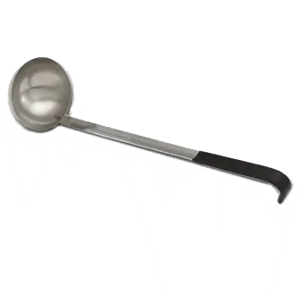 Unleash your inner chef with the Vollrath, 58033, Ladle, Serving. This ladle is a must-have tool for any commercial restaurant. With its all-natural antimicrobial properties, it ensures a hygienic serving experience. The ladle is equipped with a 3 oz. solid stainless steel bowl, perfect for portioning out soups, sauces, and gravies. Its 12 5/8" black Kool-Touch hook handle provides a comfortable grip and stays cool to the touch, even when serving hot dishes. Made in the USA, this ladle is dishwasher safe, making cleanup a breeze. Enhance your restaurant's efficiency and professionalism with this high-quality ladle.