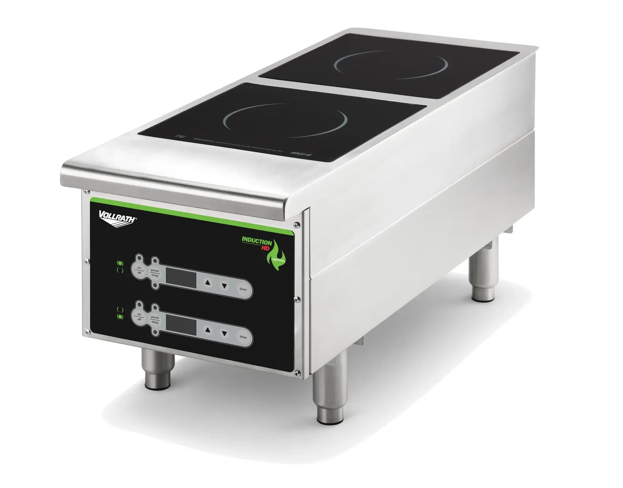 Introducing the Vollrath 912HIDC Induction Range, Countertop - the perfect addition to optimize your kitchen efficiency. This heavy-duty induction range is designed to meet the demands of a commercial restaurant setting. With its compact countertop design measuring 12"W x 30"D x 13-5/8"H, it fits seamlessly into any kitchen layout. Equipped with two hobs and digital controls, this range offers precise temperature control with a range of 100-450 F. The 1-180 minute timer function allows for precise cooking times, ensuring consistent results every time. With 2500-2900 watts per hob (5000-5800 watts total), this range delivers powerful performance. Made in the USA and certified by NSF, UL, CUL, and FCC, you can trust in its quality and reliability. Upgrade your kitchen with the Vollrath 912HIDC Induction Range and experience enhanced efficiency and productivity.