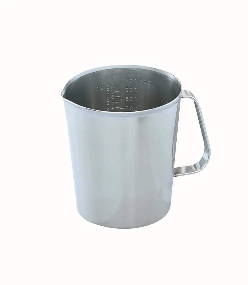 Improve your measuring accuracy with the Vollrath® graduated measuring cup. This durable stainless steel cup features easy-to-read graduation marks in both ounces and cubic centimeters for your convenience. The pour spout and beveled lip help prevent messes, and the angled handle offers a comfortable grip. Ideal for wet or dry ingredients, this measuring cup is an excellent choice for any kitchen.