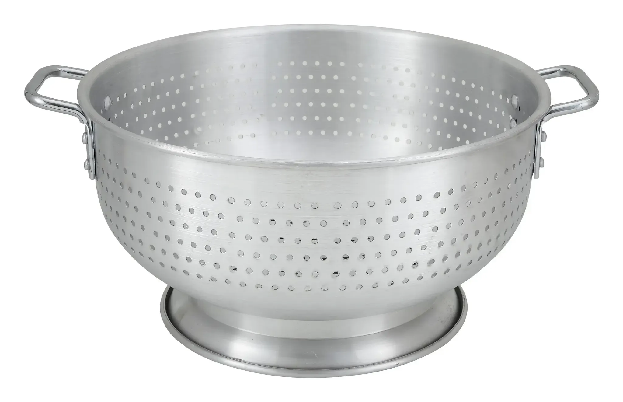 The perfect addition to any kitchen with using the Winco Colander 16 qt. This high-quality colander, model ALO-16BH, is designed to meet the rigorous demands of a bustling restaurant environment. With a generous 16-quart capacity, it is ideal for draining large quantities of pasta, vegetables, and other ingredients, making it an indispensable tool for any commercial kitchen.