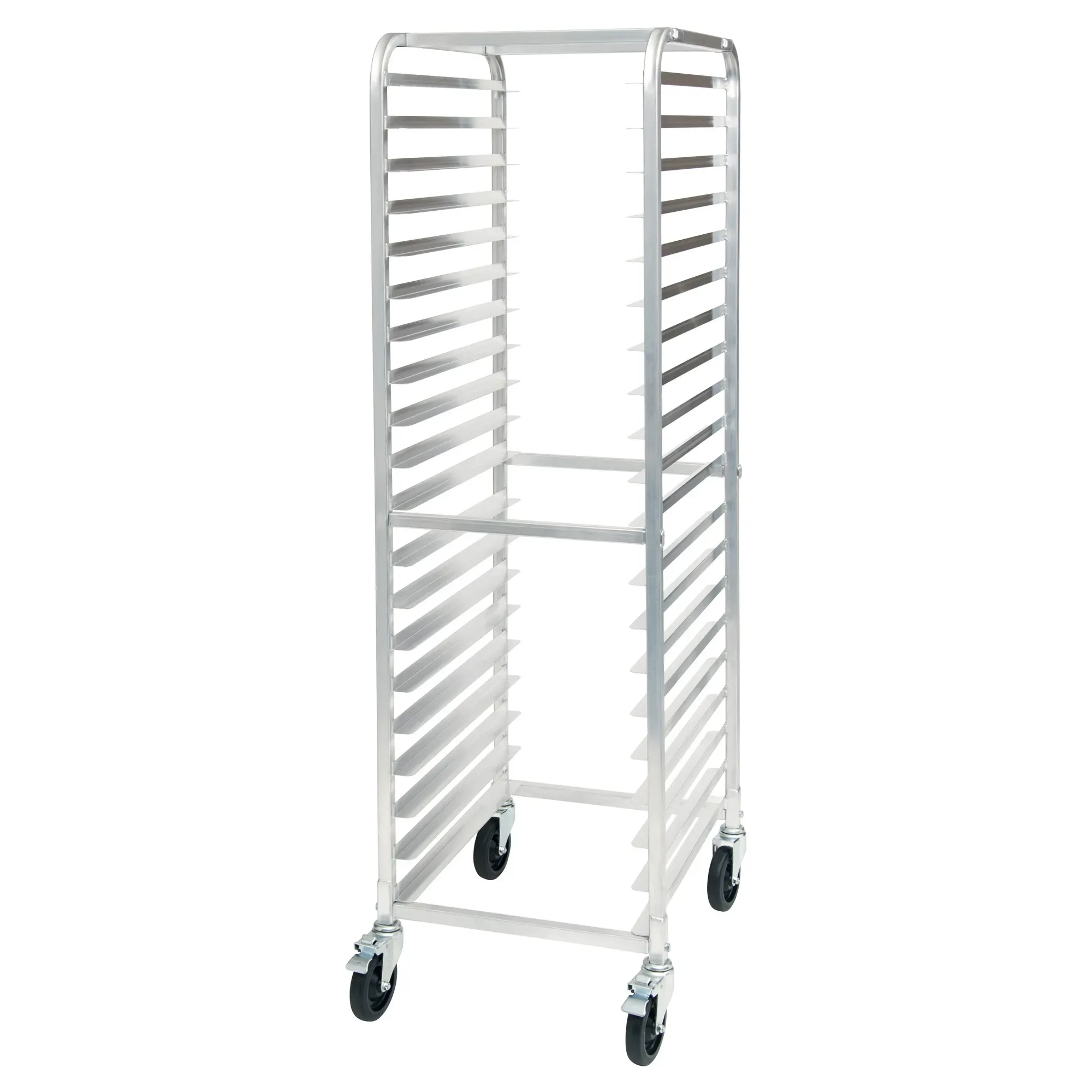 Make a statement in the kitchen with the Winco Sheet Pan Rack. Designed for efficiency and durability, this mobile full-height rack is a must-have for any bustling restaurant. With the capacity to hold up to 20 full-size (18 x 26) or 40 half-size (18 x 13) sheet pans, it offers ample space for all your baking and storage needs. The robust construction supports an impressive 800 lb. capacity, ensuring it can handle even the heaviest loads with ease.
