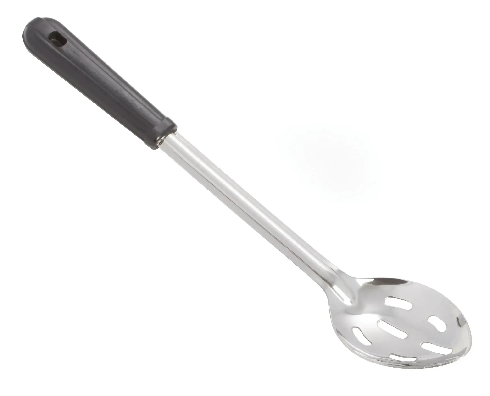 Experience unmatched efficiency with the Winco Basting Spoon. Designed specifically for the demanding environment of a restaurant kitchen, this basting spoon is a must-have tool for chefs and culinary professionals. Crafted with a 1.2mm thick stainless steel, the Winco Basting Spoon ensures durability and longevity, even with frequent use. The slotted design allows for precise control when basting, draining, or serving, making it an essential utensil for a variety of cooking tasks. The black rounded Bakelite handle not only provides a comfortable grip but also remains cool to the touch, ensuring safety and ease of use during high-heat cooking. The Winco Basting Spoon, model BSSB-15, stands out with its robust construction and thoughtful design. The slotted feature is particularly useful for separating liquids from solids, making it ideal for tasks such as skimming fat from broths or lifting delicate poached items. The 1.2mm thick stainless steel guarantees that the spoon will not bend or warp, maintaining its shape and functionality over time. In a bustling restaurant setting, efficiency and reliability are paramount. The Winco Basting Spoon delivers on both fronts, providing a versatile and dependable tool that enhances kitchen productivity. Whether you're basting a roast, serving vegetables, or skimming sauces, this basting spoon is designed to meet the rigorous demands of professional cooking. Elevate your kitchen's performance with the Winco Basting Spoon and experience the difference in quality and efficiency.