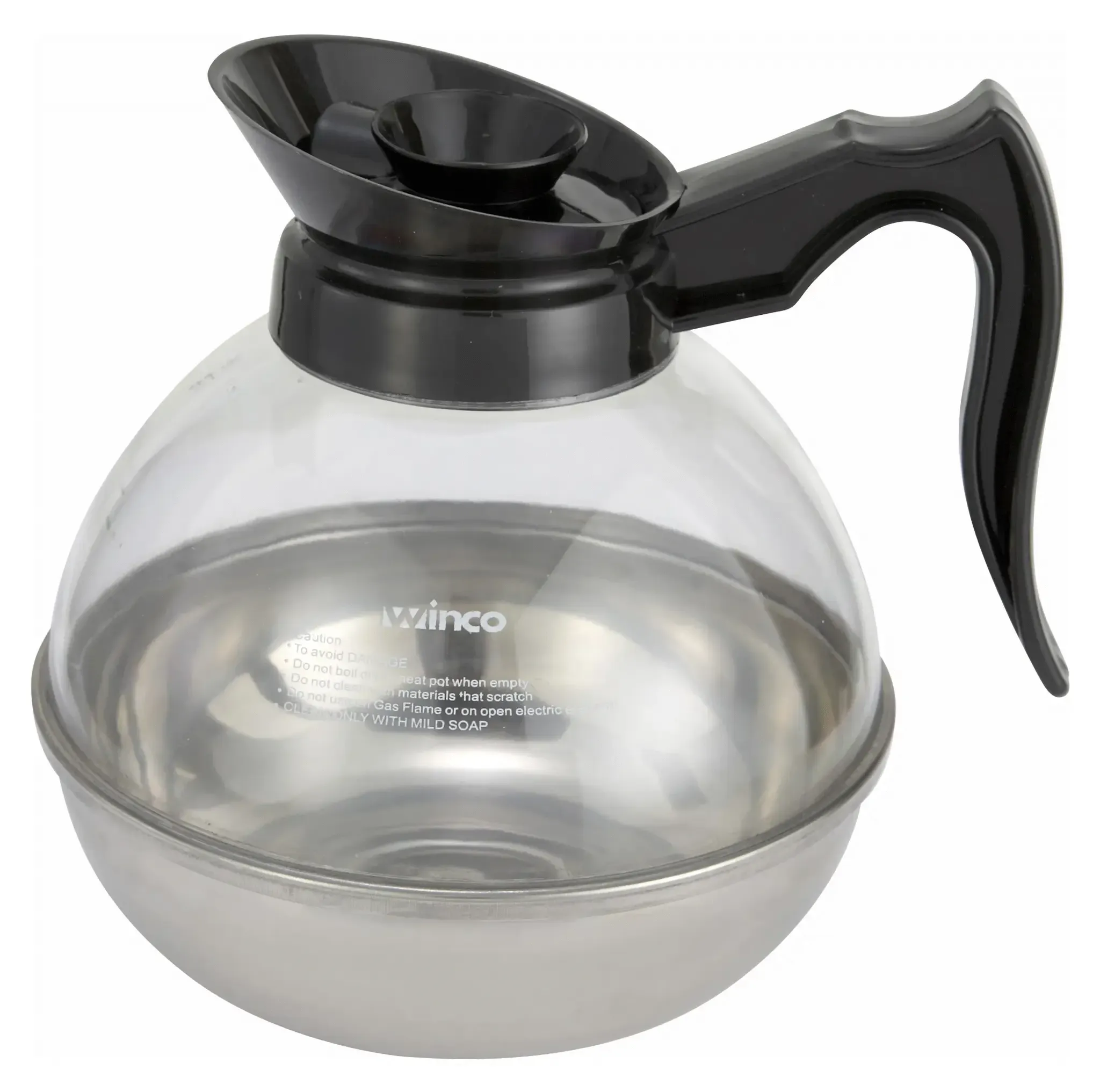 Master the culinary craft with the Winco Coffee Decanter, a must-have for any restaurant aiming to deliver exceptional coffee service. This 64 oz. plastic decanter, reinforced with a stainless steel base, is designed to withstand the rigors of a bustling kitchen while maintaining a sleek and professional appearance. The Winco Coffee Decanter is not just about durability; it’s about performance. The 64 oz. capacity ensures that you can serve multiple guests without constant refills, making it ideal for busy breakfast rushes or after-dinner coffee service. The plastic construction is lightweight, reducing strain on your staff, while the stainless steel base adds a touch of elegance and ensures stability on any surface. In a restaurant setting, efficiency and presentation are key. The Winco Coffee Decanter excels in both areas. Its ergonomic design allows for easy pouring, minimizing spills and ensuring a smooth service experience. The clear plastic body lets your staff quickly see when a refill is needed, keeping the coffee flowing and your customers satisfied. While the model number CD-64K may not be the first thing your customers notice, it signifies a product built to meet the high standards of the foodservice industry. Trust in the Winco Coffee Decanter to enhance your coffee service, combining practicality with a polished look that complements any restaurant décor. Elevate your coffee service with the Winco Coffee Decanter, where quality meets convenience in every pour.