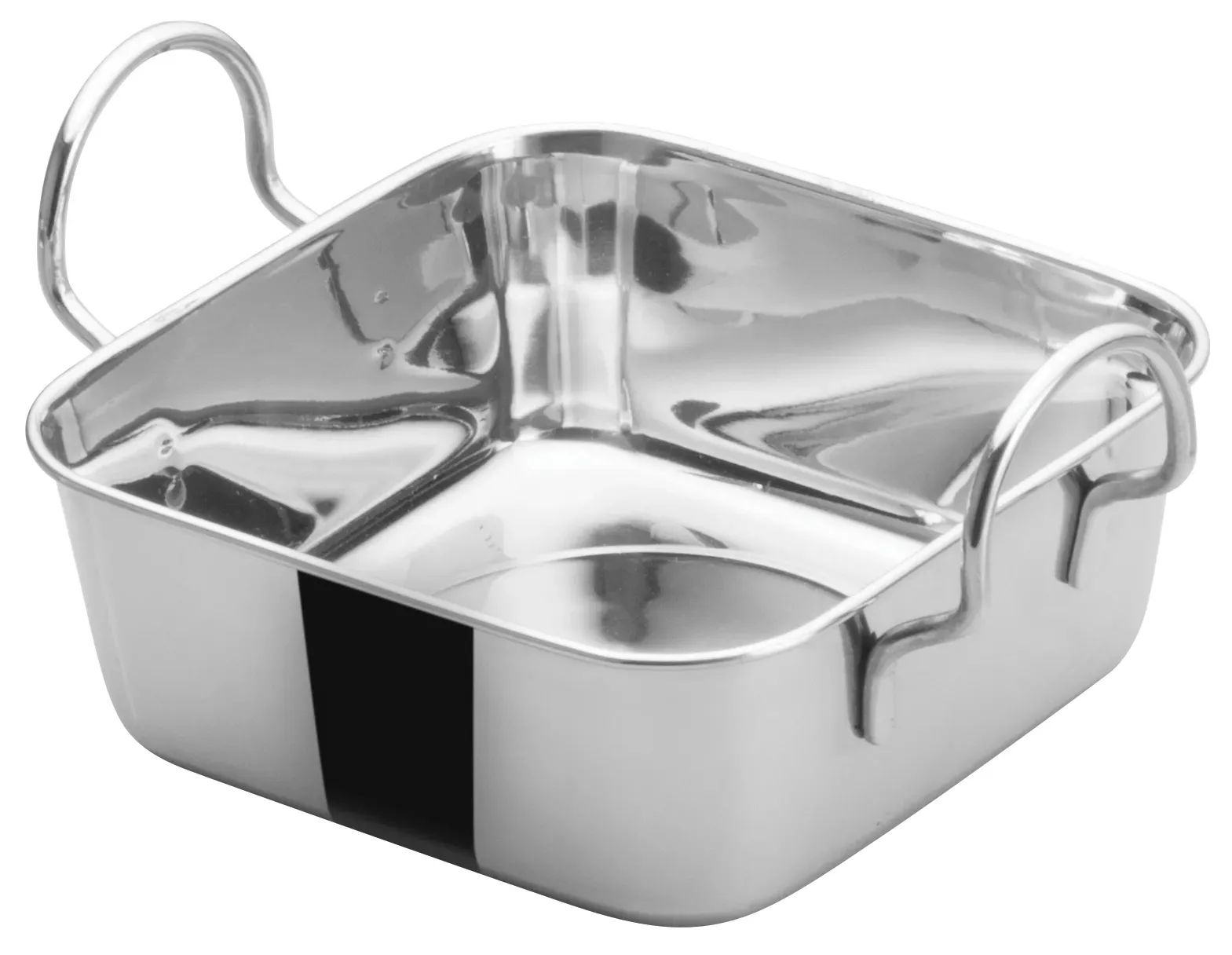 Enhance the cooking repertoire with the Winco Mini Roasting Pan. This versatile kitchen essential, model DDSB-101S, is crafted from high-quality stainless steel, ensuring durability and a sleek, professional appearance. Measuring 4-1/2 inches square, the Mini Roasting Pan is perfectly sized for individual servings, making it an ideal choice for restaurants looking to elevate their presentation and portion control.