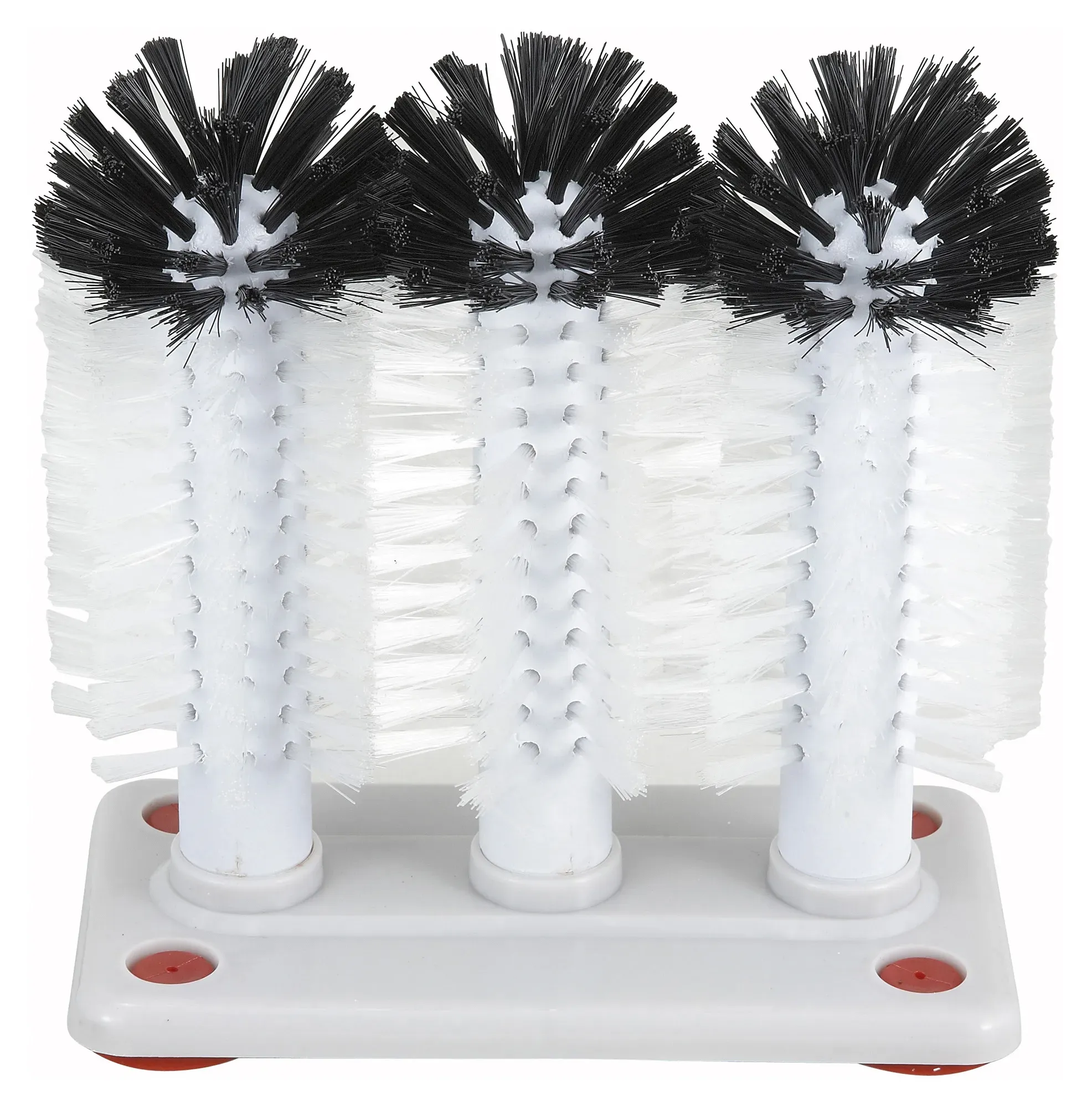 Perfect for everyday use in bustling restaurant environments, the Winco Glass Washer Brush is an essential tool for maintaining sparkling clean glassware. This efficient cleaning device features three durable brushes mounted on a sturdy base, ensuring thorough and quick cleaning of glasses of various sizes and shapes.