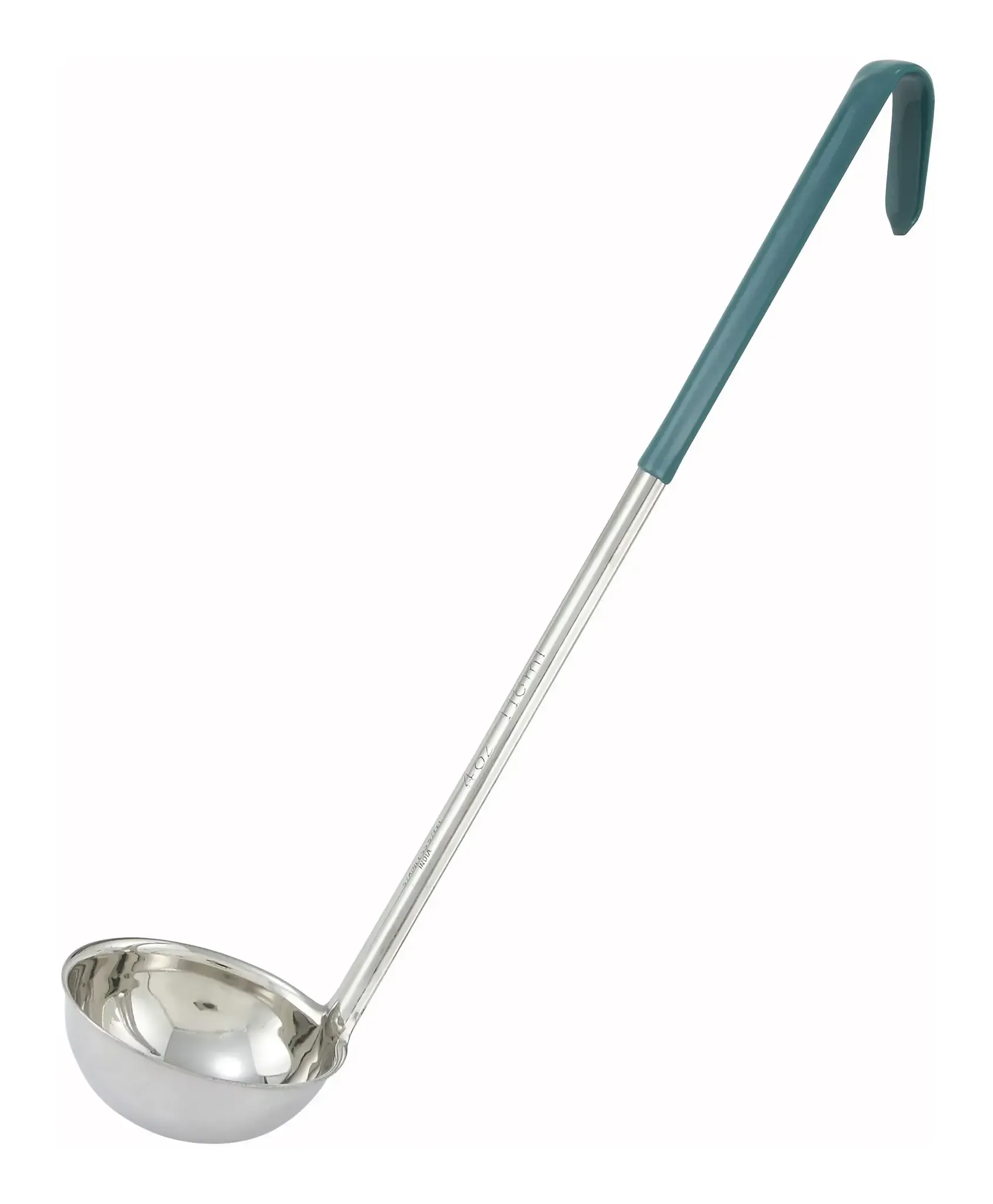 The Winco Color-Coded Ladle features a 15-1/2 inch handle, providing ample reach for deep pots and large containers, ensuring you can serve soups, sauces, and stews with ease. The green color-coding on the handle not only adds a touch of organization to your kitchen but also helps in preventing cross-contamination, a crucial aspect in maintaining food safety standards.
