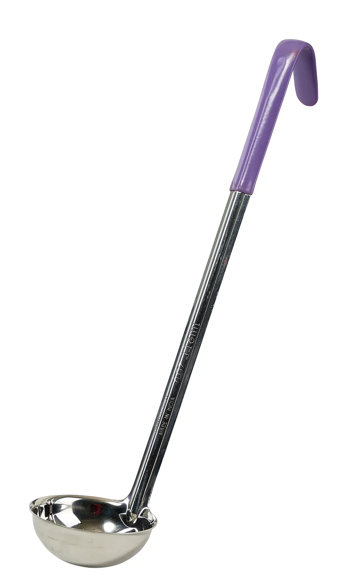 Elevate culinary tools with the Winco Color-Coded Ladle. Designed specifically for restaurant settings, this 4 oz. ladle is an essential addition to any professional kitchen. Crafted from one-piece stainless steel, it ensures durability and longevity, making it a reliable tool for daily use. The 15-1/2 inch handle provides ample reach, allowing chefs to serve soups, sauces, and other liquids with ease and precision. One of the standout features of the Winco Color-Coded Ladle is its allergen-free design. The ladle is color-coded in a vibrant purple, making it easy to identify and use for allergen-specific tasks. This is particularly important in a busy restaurant environment where cross-contamination must be avoided to ensure the safety of all diners. The color-coding system helps staff quickly and efficiently manage food allergens, enhancing both kitchen efficiency and customer satisfaction. The model LDC-4P is not just a tool but a commitment to food safety and quality. Its one-piece construction eliminates seams and joints where food particles can accumulate, making it easier to clean and maintain. This design also adds to the ladle's strength, ensuring it can withstand the rigors of a bustling kitchen. Incorporate the Winco Color-Coded Ladle into your kitchen arsenal and experience the perfect blend of functionality, safety, and durability. Whether you're serving up a hearty stew or a delicate sauce, this ladle is designed to meet the high standards of professional chefs and restaurant owners alike.