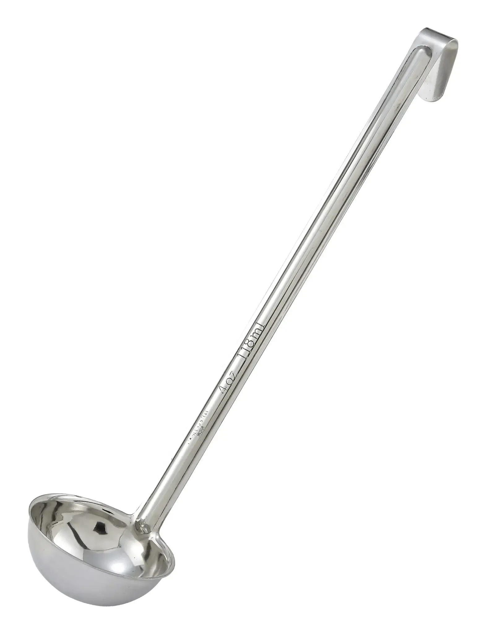 Elevate kitchen performance with the Winco Prime NSF 4 oz. Ladle. Crafted from one-piece stainless steel, this ladle is designed to meet the rigorous demands of a professional restaurant environment. The seamless construction ensures durability and hygiene, making it an essential tool for any commercial kitchen. The 4 oz. capacity of the Winco Prime NSF Ladle is perfect for portion control, allowing chefs to serve consistent amounts of soups, sauces, and dressings with ease. Its ergonomic design provides a comfortable grip, reducing hand fatigue during extended use. The stainless steel material not only offers a sleek, professional appearance but also resists corrosion and maintains its shine even after repeated use and washing. Incorporating the Winco LDIN-4 model into your kitchen setup ensures you are using a product that meets NSF standards, guaranteeing safety and quality. This ladle is a reliable choice for busy kitchens that require both efficiency and precision. Whether you are serving a delicate consommé or a hearty stew, the Winco Prime NSF 4 oz. Ladle delivers exceptional performance. Its robust construction and practical design make it a valuable addition to any restaurant's kitchen arsenal. Invest in the Winco Prime NSF Ladle and experience the difference in quality and functionality that it brings to your culinary operations.