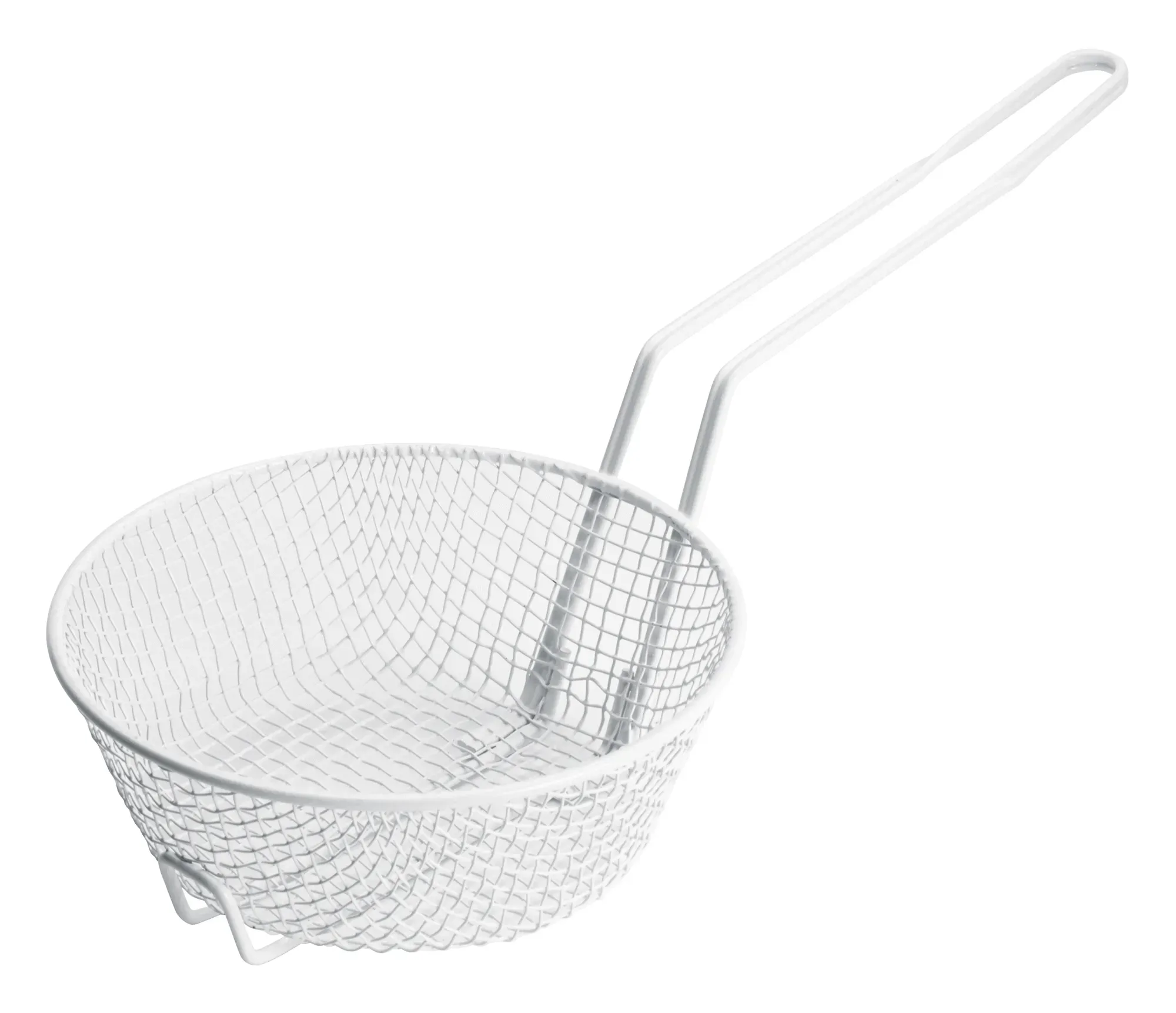 Simplify kitchen tasks with the Winco Breading Basket. Designed specifically for restaurant settings, this versatile tool boasts an 8-inch diameter and a 3-inch height, making it ideal for breading a variety of foods efficiently. The medium mesh design ensures that your ingredients are evenly coated, while the non-stick white plastic coating on the steel wire frame guarantees easy cleanup and durability.