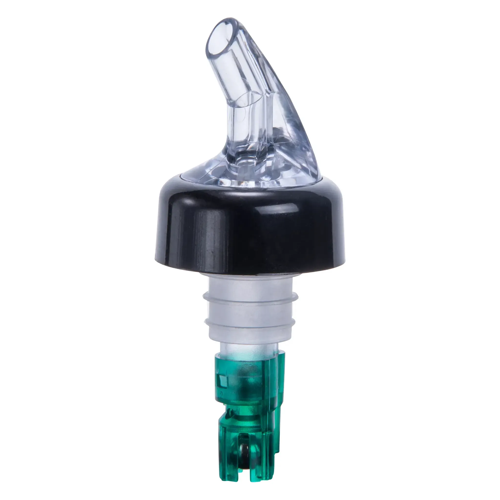 The Winco Measuring Pourer features a black collar and a clear spout, making it easy to see the contents and measure accurately. The inside ball bearing ensures a smooth and controlled pour every time, reducing spills and waste. The poly plastic cork provides a secure fit, preventing leaks and maintaining the integrity of your ingredients.