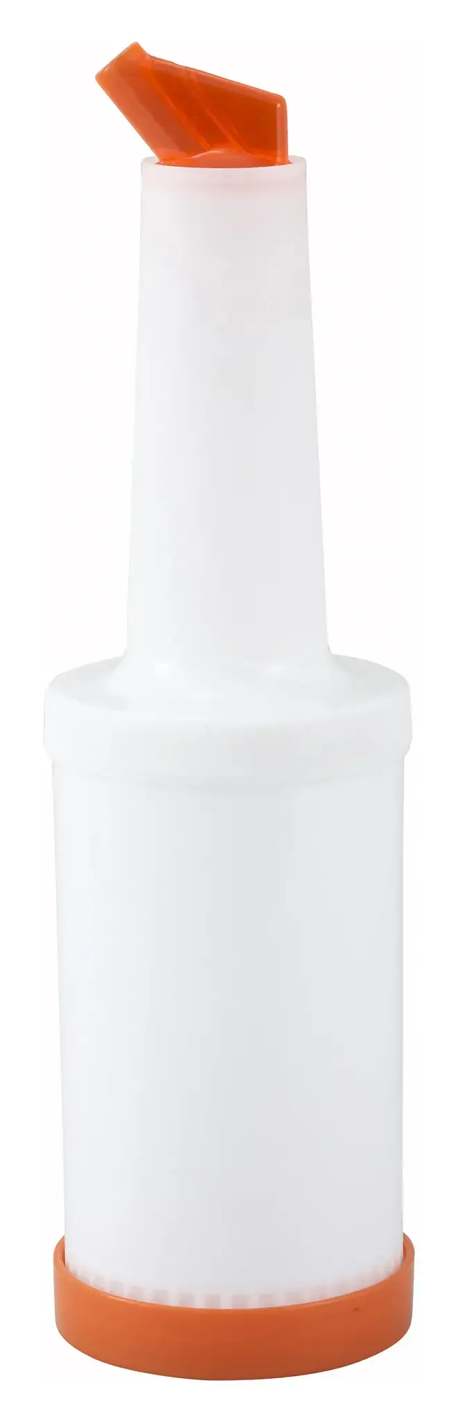 Upgrade the kitchen arsenal with the Winco Liquor & Juice Multi Pour 1 qt. Featuring an eye-catching orange spout and lid, this versatile container is designed to streamline beverage service in any restaurant setting. The vibrant orange color not only adds a pop of color to your bar or kitchen but also helps in quick identification, ensuring efficient and smooth operations during peak hours.