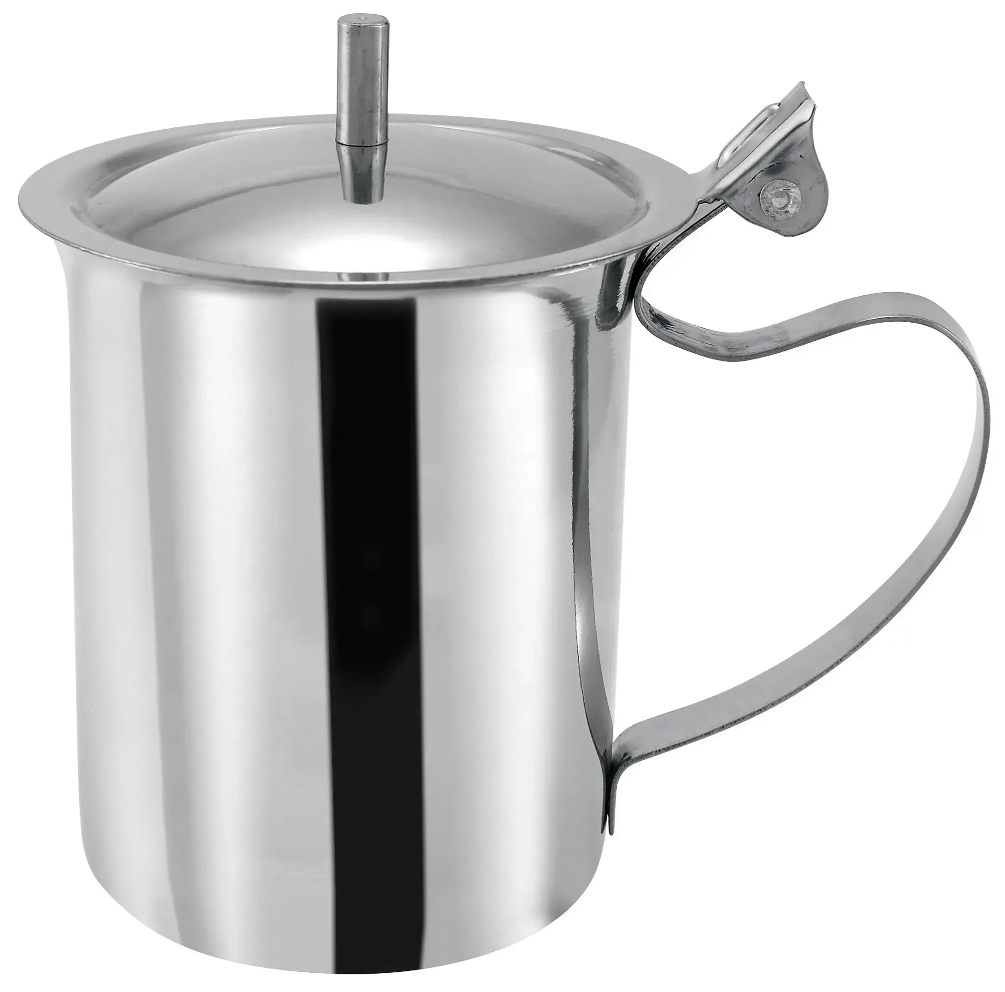 A kitchen essential using the Winco ServerCreamer, this 10 oz. stainless steel creamer with a cover and knob handle is a must-have for any restaurant setting. Designed with both functionality and elegance in mind, the ServerCreamer ensures that your guests enjoy their coffee or tea with a touch of sophistication.