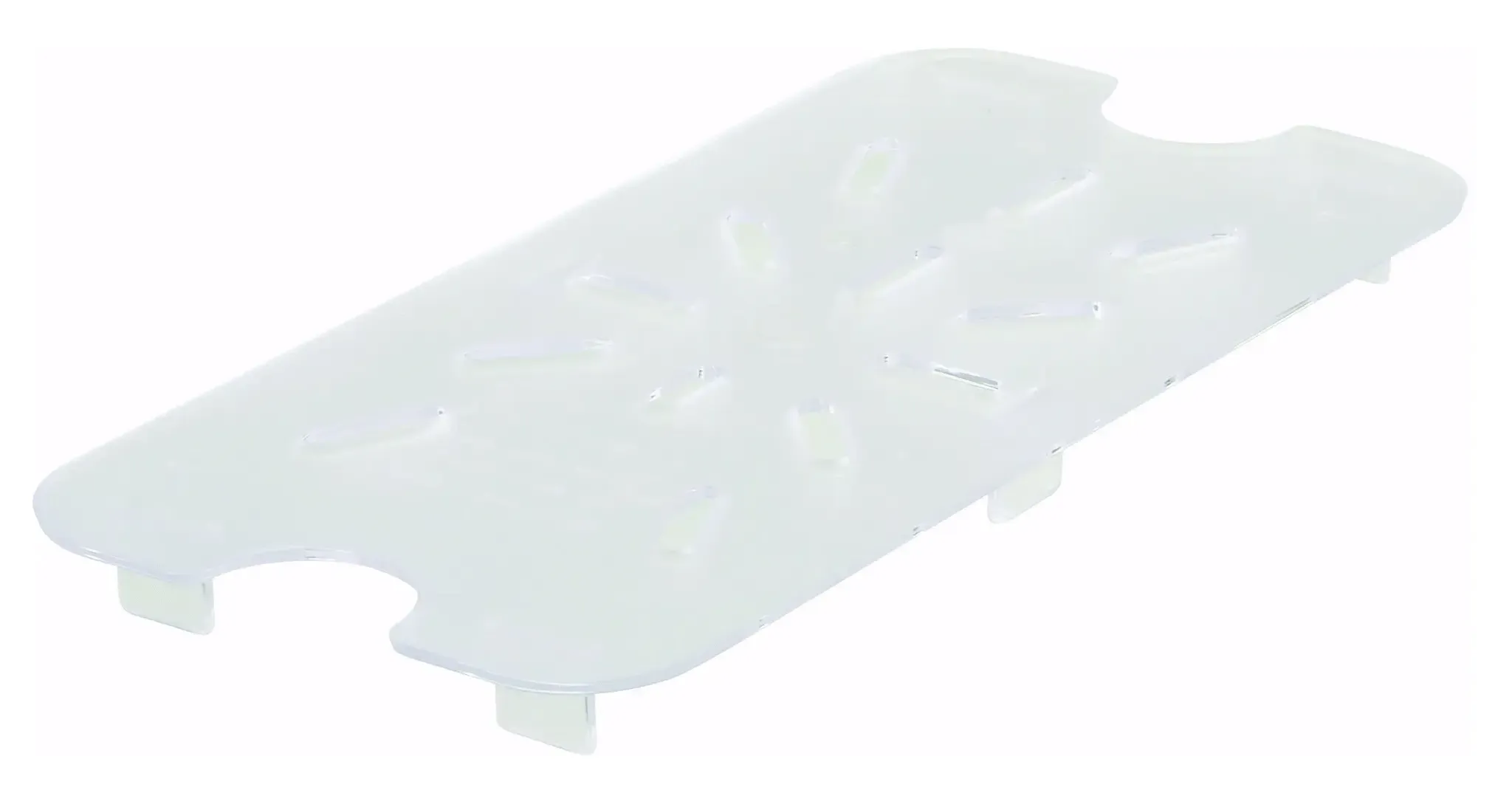 Optimize kitchen workflow with the Winco Poly-Ware Drain Shelf. Designed to fit ninth-size food pans, this essential kitchen accessory measures 4-7/16 x 2-1/8 inches, making it a perfect fit for your 1/9 size food pans. Crafted from durable polycarbonate, the Winco Poly-Ware Drain Shelf ensures longevity and reliability in a bustling restaurant environment.