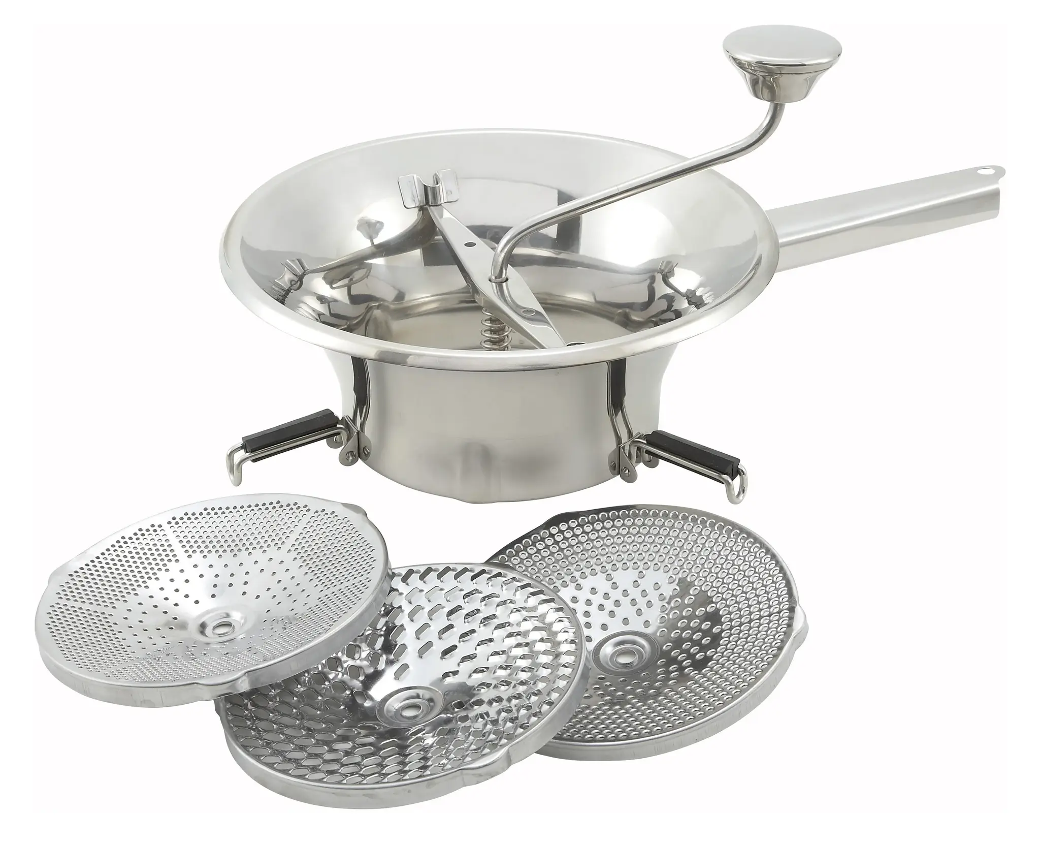 Engineered for perfection using top-quality materials, the Winco Food Mill is an essential tool for any professional kitchen. This versatile food mill boasts a 2-quart capacity and a 9-inch diameter, making it ideal for processing a variety of foods with ease. Crafted from durable stainless steel, it ensures longevity and resistance to corrosion, maintaining its pristine condition even with frequent use.