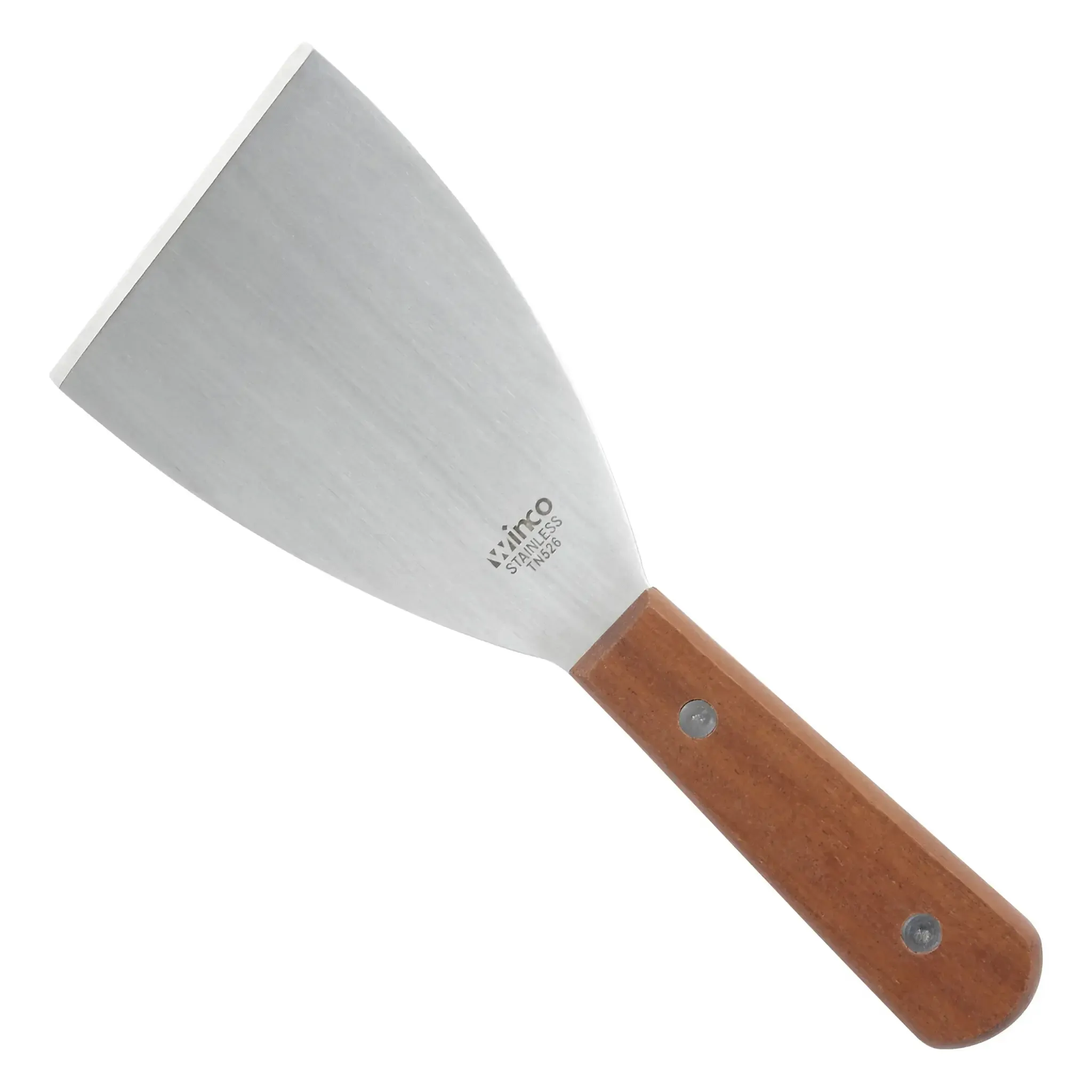 Elevate culinary tools with the Winco Scraper, a must-have for any professional kitchen. This versatile tool features a 4-12 x 3-18 blade, making it perfect for a variety of scraping tasks. The small size ensures precision and control, allowing chefs to handle delicate tasks with ease. Crafted with a stainless steel blade, the Winco Scraper boasts a satin finish that not only enhances its aesthetic appeal but also ensures durability and resistance to corrosion. This makes it an ideal choice for the demanding environment of a busy restaurant kitchen. The wooden handle provides a comfortable grip, reducing hand fatigue during extended use. One of the standout features of the Winco Scraper is its dishwasher-safe design. This ensures that maintaining hygiene standards is effortless, as the scraper can be easily cleaned and sanitized between uses. The combination of a robust stainless steel blade and a comfortable wooden handle makes this scraper a reliable and efficient tool for any culinary professional. While the model number TN526 may not be the first thing that catches your eye, it signifies the quality and reliability that Winco products are known for. This scraper is designed to meet the high standards of professional kitchens, ensuring that it performs consistently under pressure. In summary, the Winco Scraper is an essential tool for any restaurant, offering durability, precision, and ease of maintenance. Its stainless steel blade, wooden handle, and dishwasher-safe design make it a valuable addition to your culinary arsenal.
