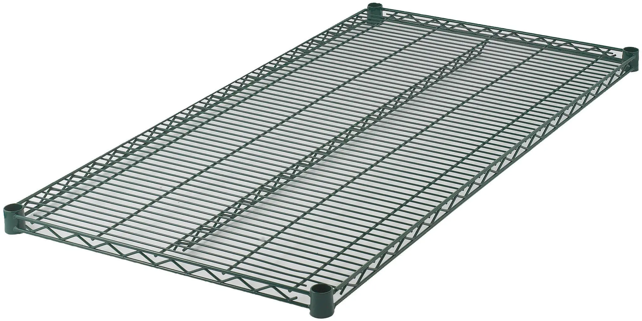 The wire construction of the Winco VEX-2148 Shelf is epoxy coated in green, providing a robust and corrosion-resistant surface that is easy to clean and maintain. This coating not only enhances the shelf's durability but also adds a touch of color to your storage area, making it easier to identify and access your supplies quickly.
